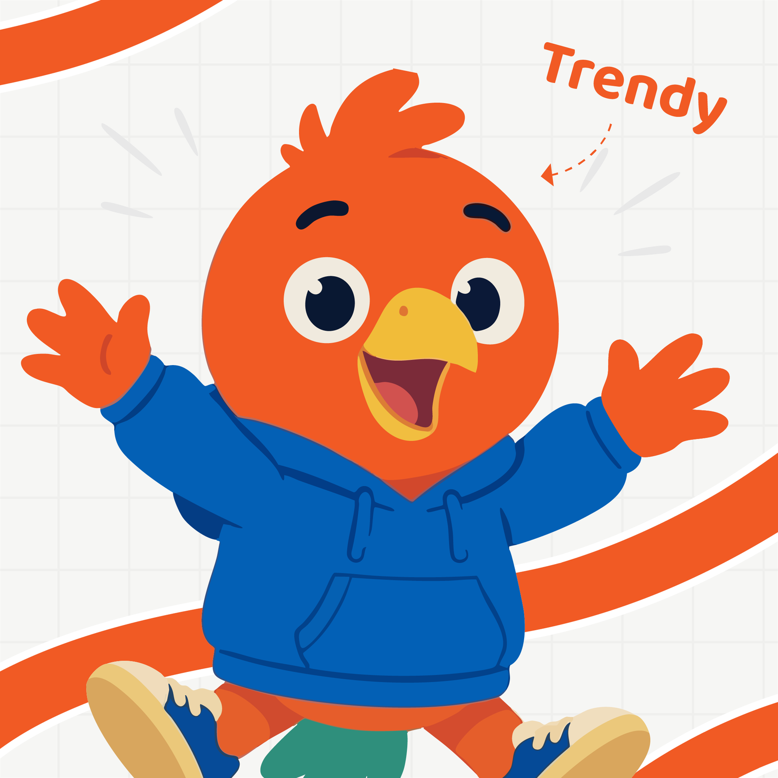 ما جيناش وحدنا، جبنا معنا تريندي. هذا ماشي مجرد ماسكوت، هو رمز لهويتنا البصرية الجديدة وواحد رسمي من ليكيب تاعنا. تراندي هو اللي يعبر على الروح العصرية والخفيفة اللي رانا حابين تكون في كل حاجة نخدموها